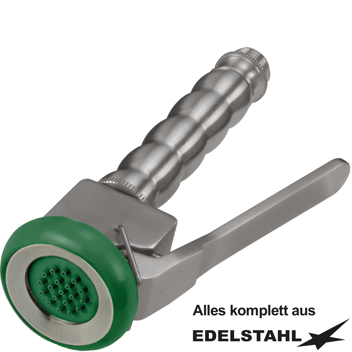 - Der Handgriff ist komplett aus Edelstahl