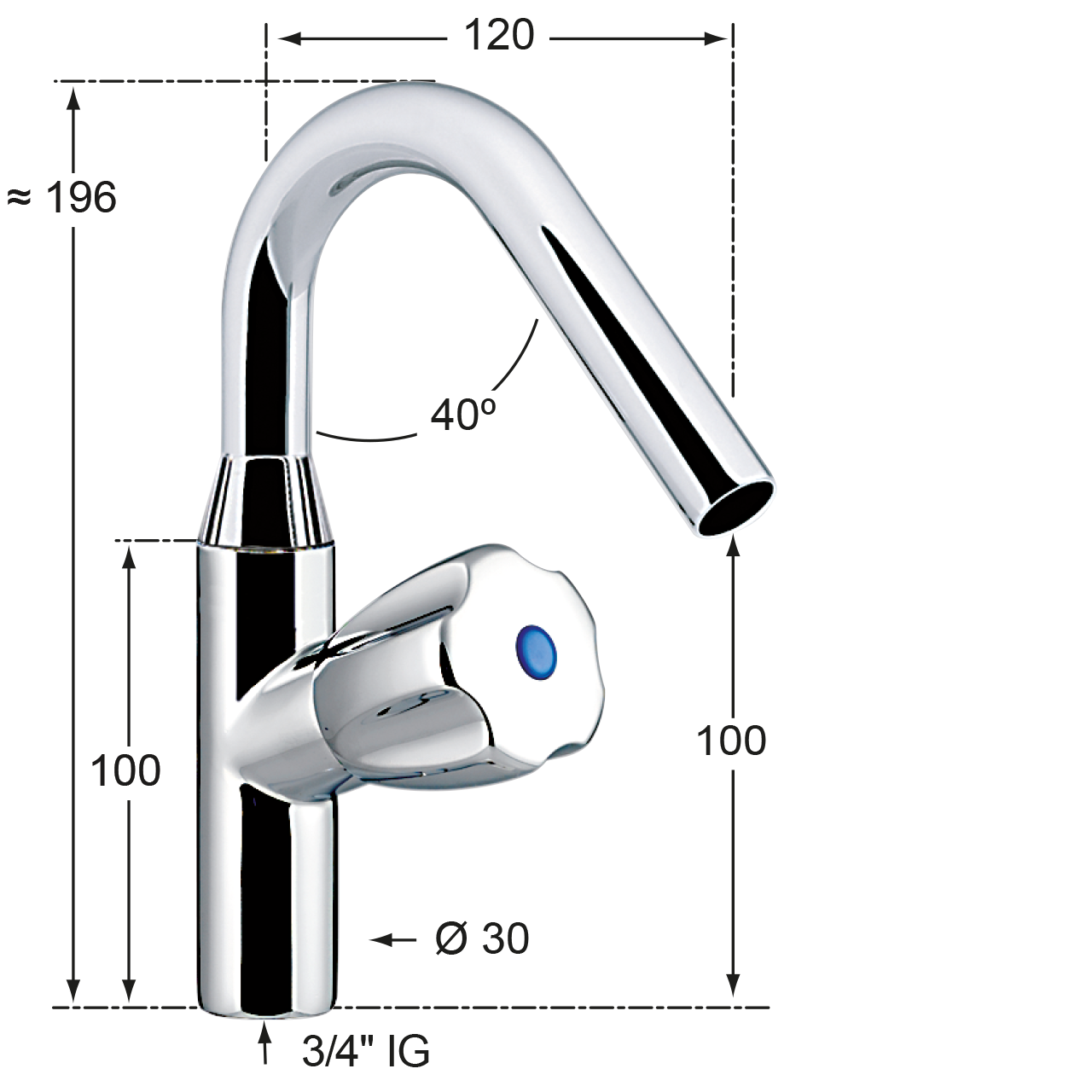 - Körper mit 3/4" Innengewinde, ohne Gewindestutzen