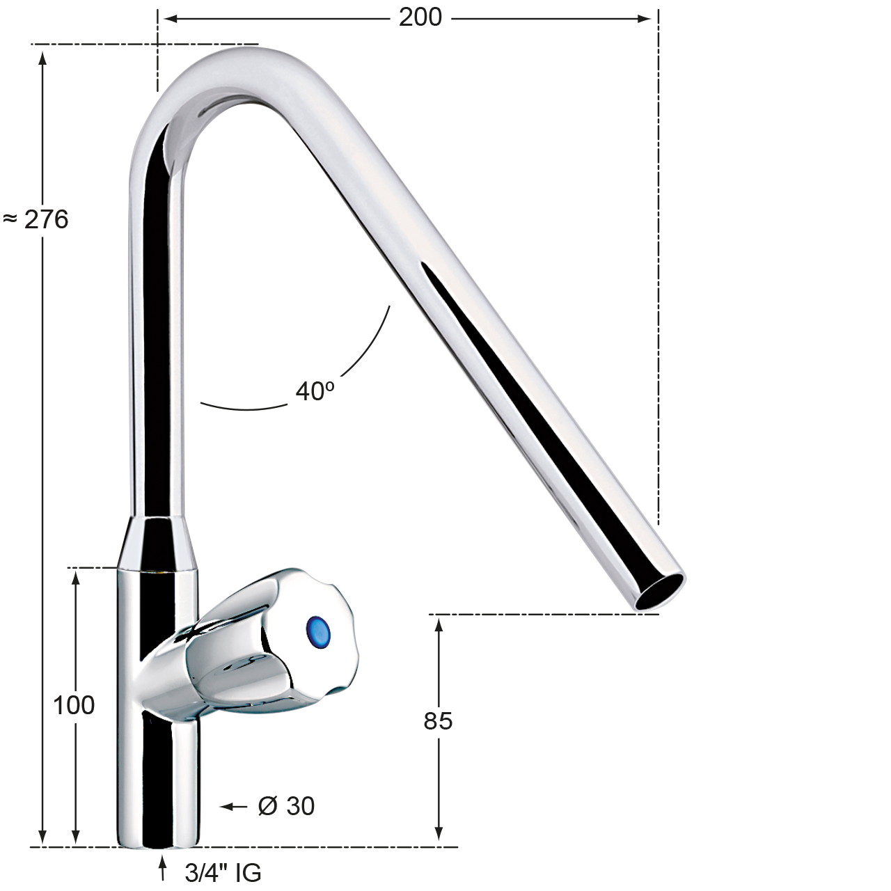 - Körper mit 3/4" Innengewinde, ohne Gewindestutzen