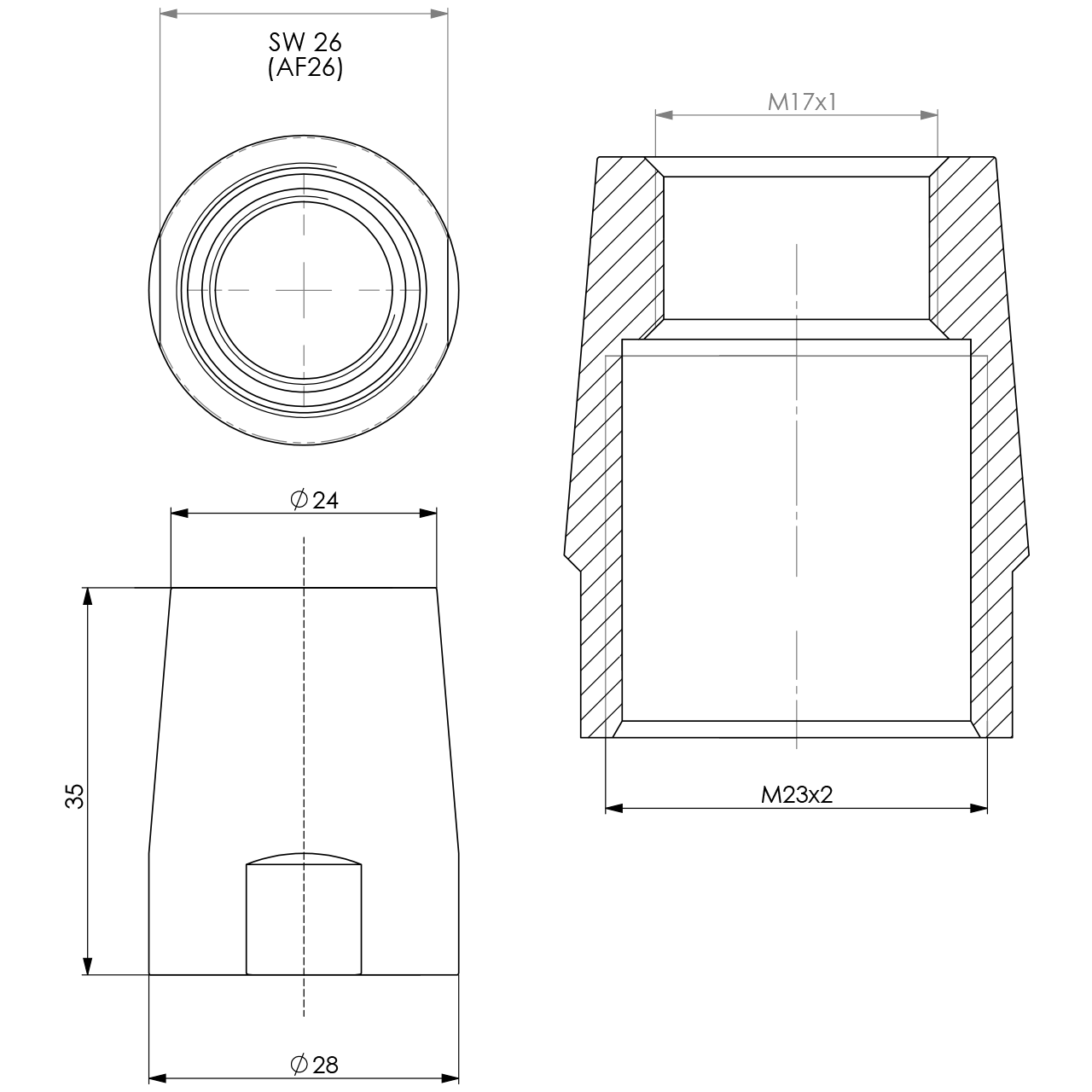 Produktinformationen "Verschraubung Aussenhülse SW26 Ø22"