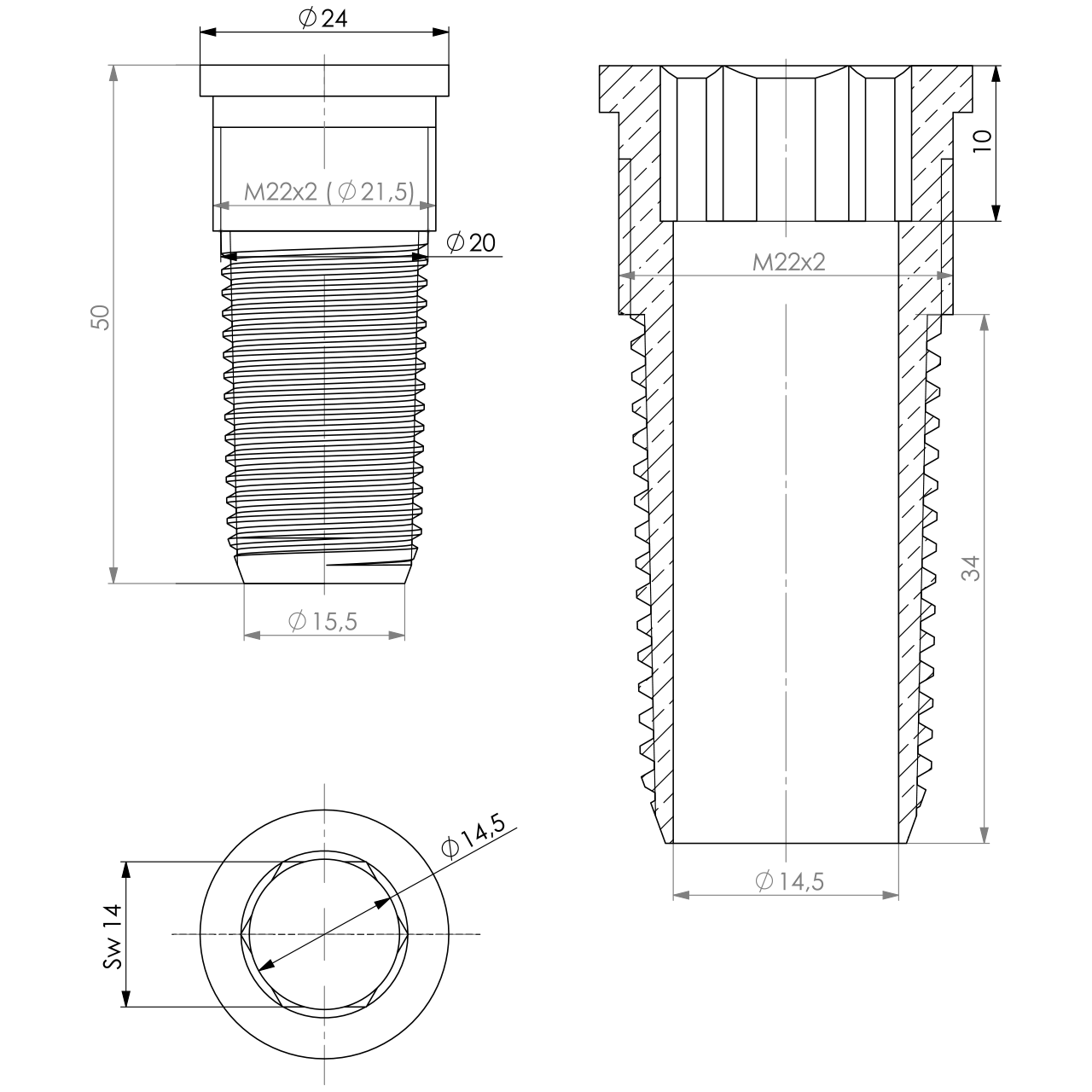 Produktinformationen "Innenschraube zu Überwurfmutter neu"