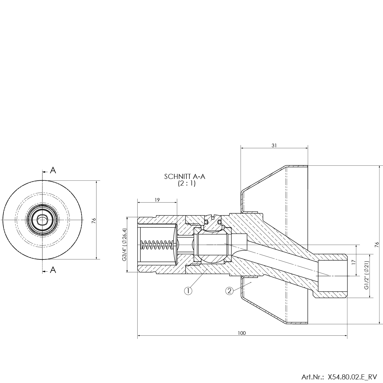 absperrbarer Wand-S-Anschluss ± 17 mm