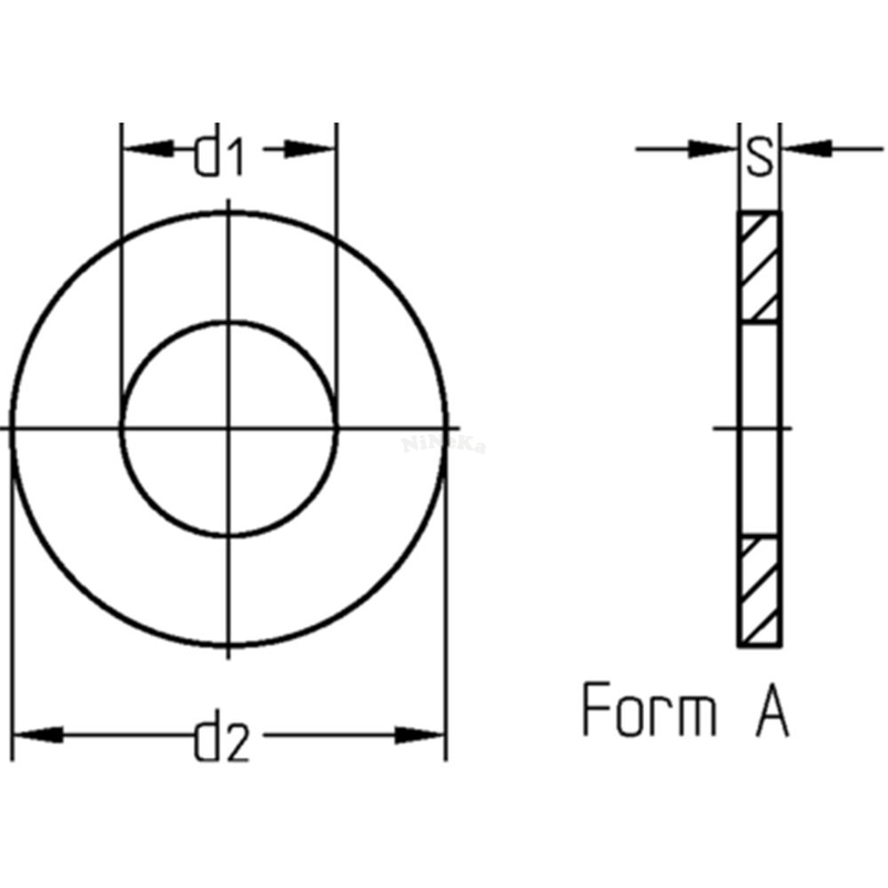 - d2: 18,5 mm, d1: 11 mm, S: 2 mm