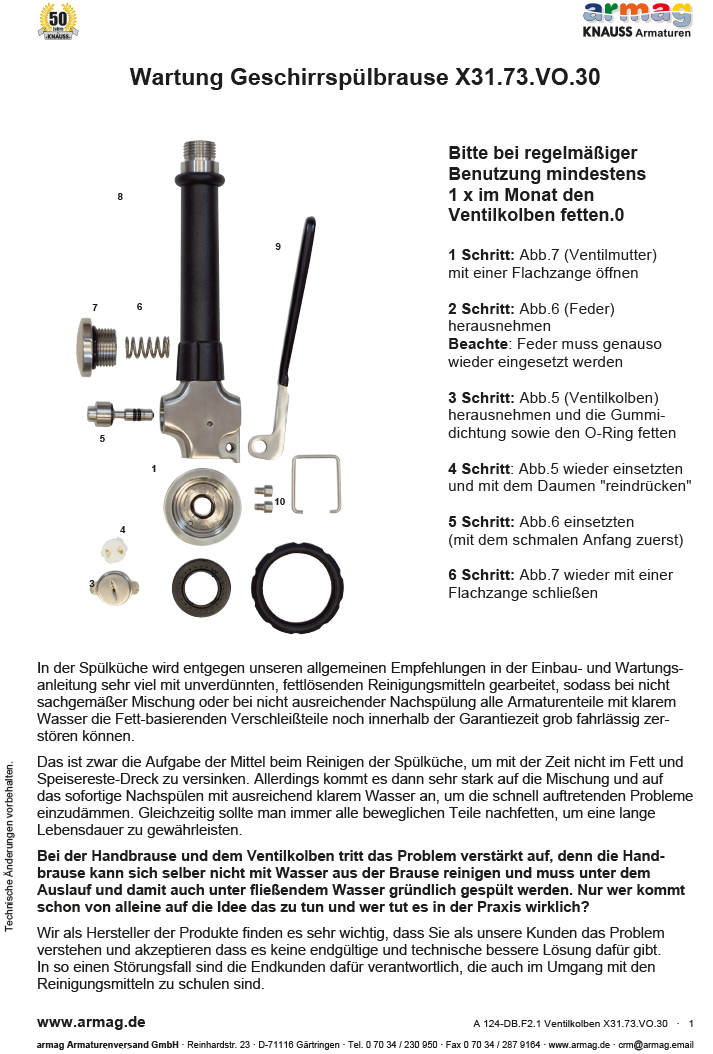 - Geschirrspül-Handbrause 1/2" Edelstahl und rückschlagfrei