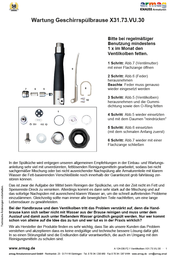 - Geschirrspül-Handbrause 1/2" Edelstahl und rückschlagfrei