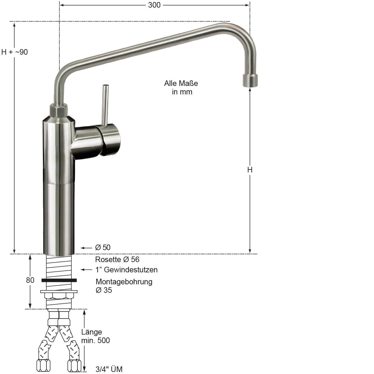 - Edelstahl-Schläuche mit 3/4" ÜM