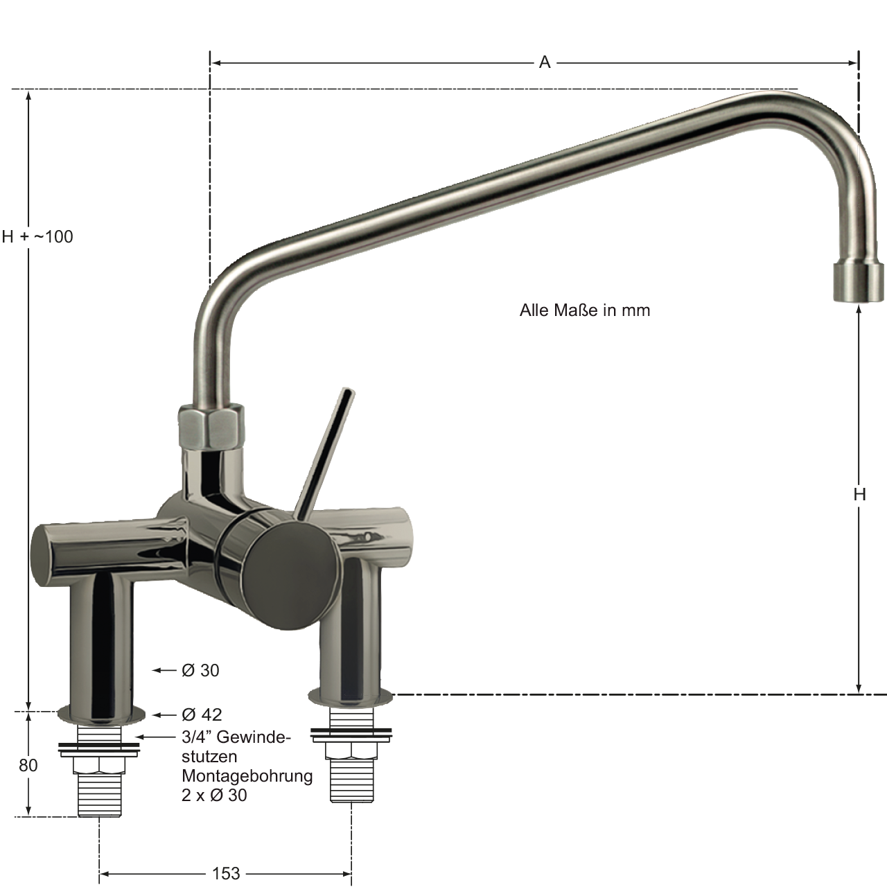 | Montagebohrung: | Abstand 153 mm - 2x Ø 30 mm |